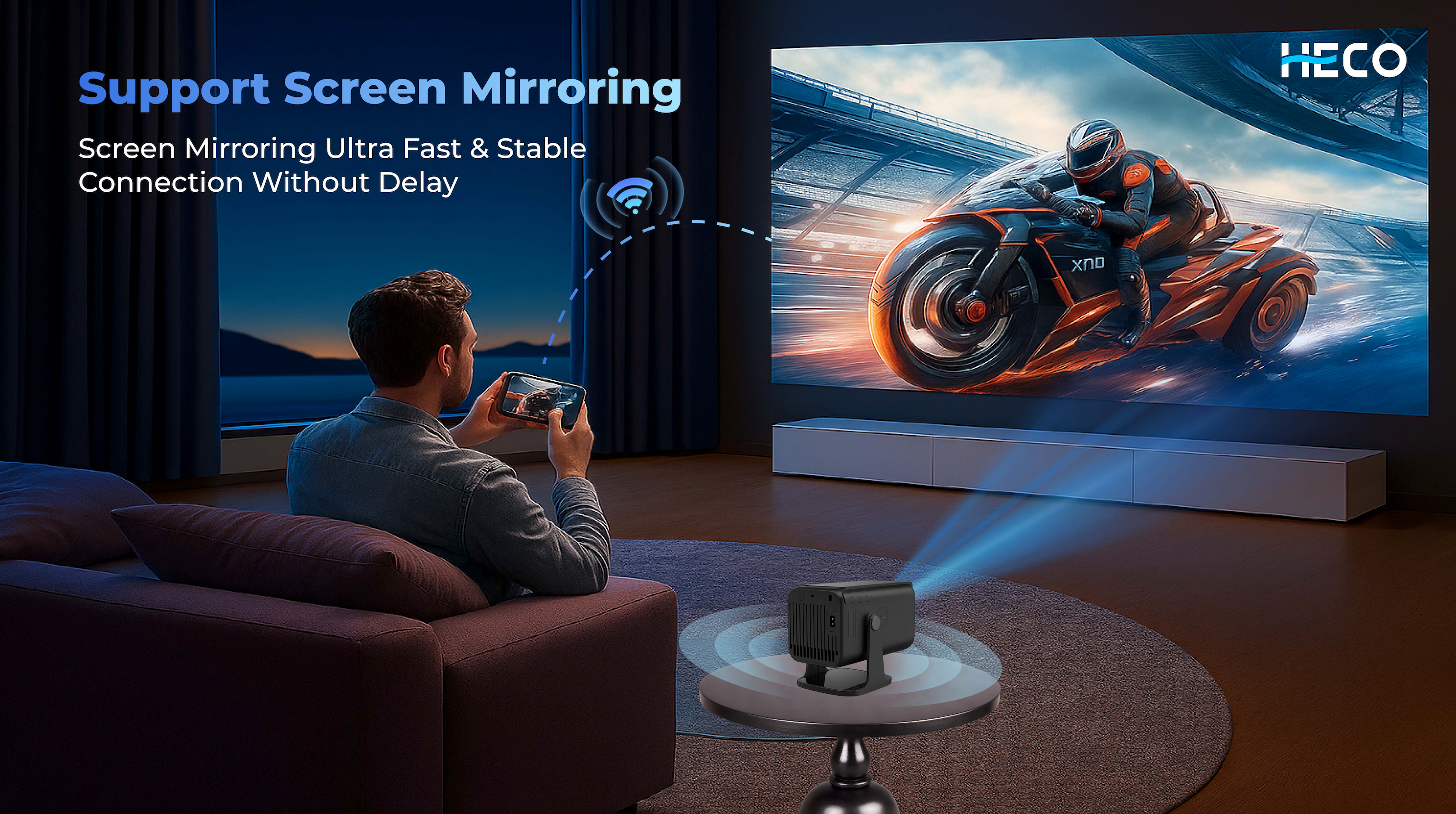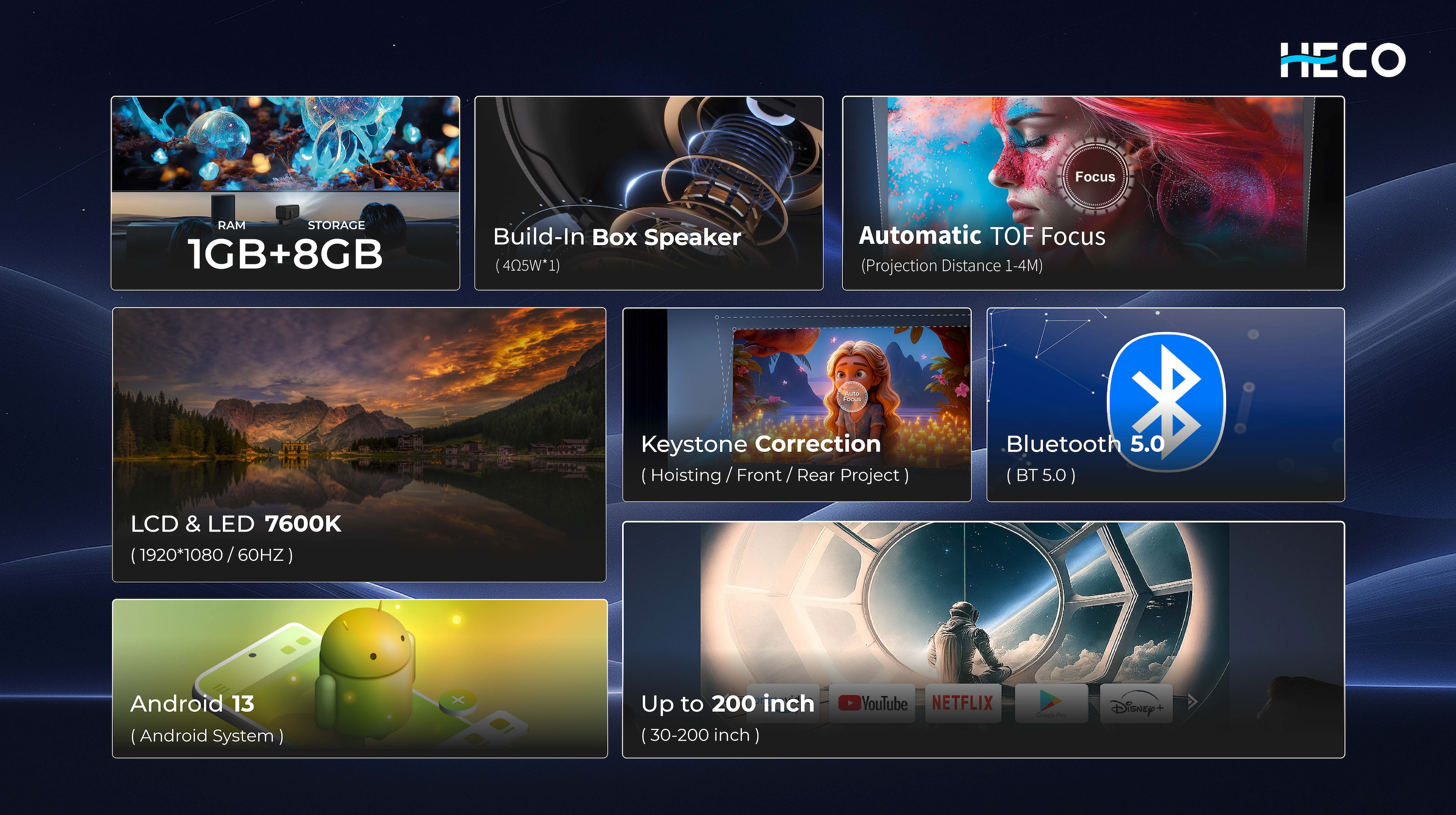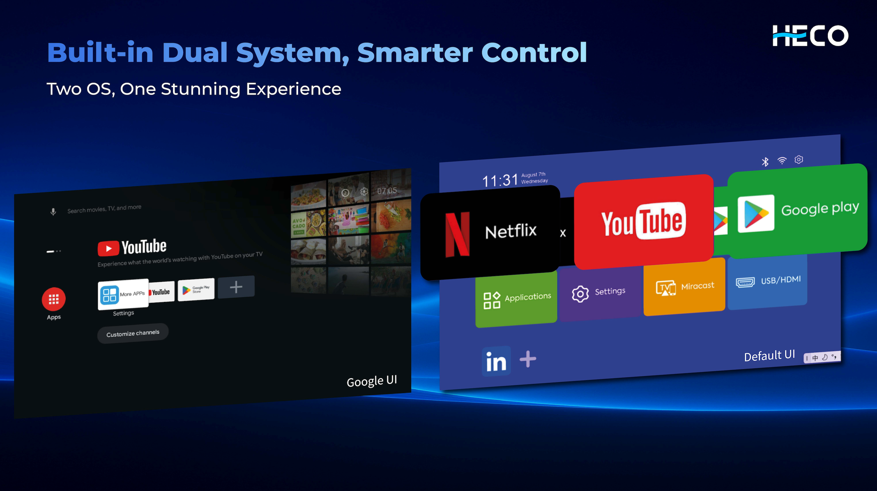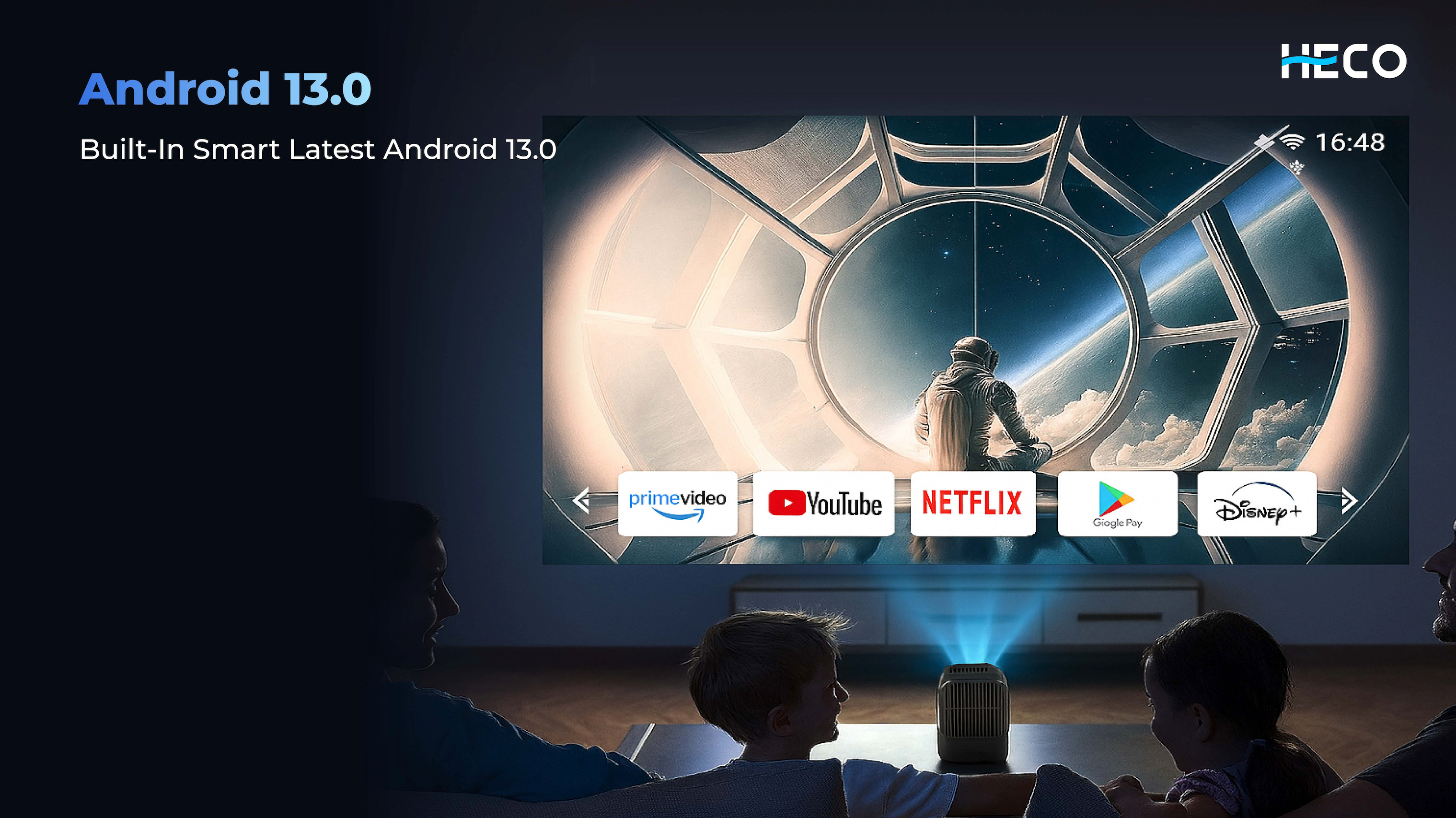 Heco Projector P400 uses OS Android 13 with Dual UI System (Default + Google TV UI)